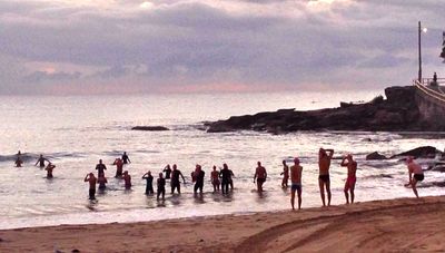 Most of this lot are going on to do a ‘Double’ making their early morning swim 3.2 kms!