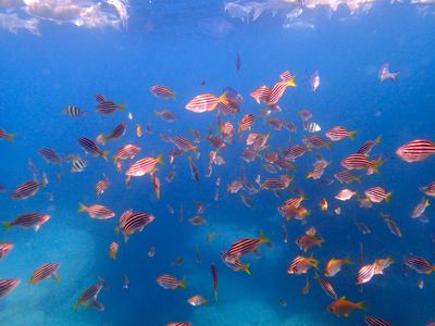 Also love the Diamond Fish that congregate over the pale, big boulders half way near the hut… They look like the most beautiful art work as they hang together in formation illuminated against the paleness of the rocks, Slithers of sunlight filter through to make the sight even more magic!