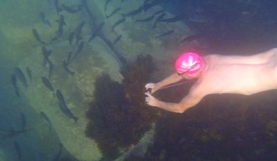 Also love the Diamond Fish that congregate over the pale, big boulders half way near the hut… They look like the most beautiful art work as they hang together in formation illuminated against the paleness of the rocks, Slithers of sunlight filter through to make the sight even more magic!