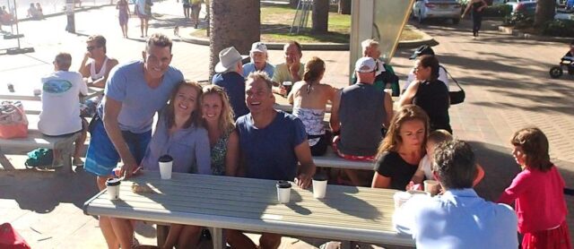 Back at the benches for apres-swim, most of us agree, the waves were great for a change.