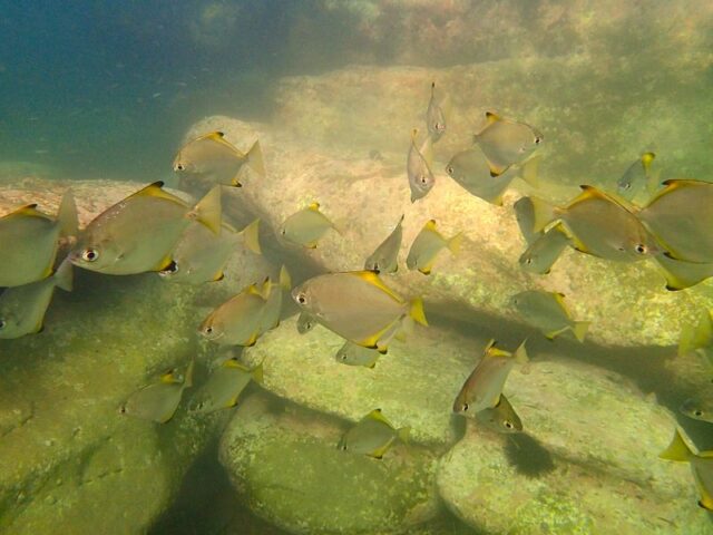 No fishy photos of today’s swim I’m afraid, too murky but I’ll just include a couple of earlier in the week. Bengali sergeants, a cute looking cobblerfish and swimming through schools of diamond fish and mados…