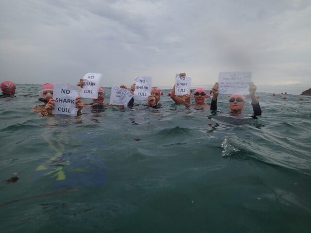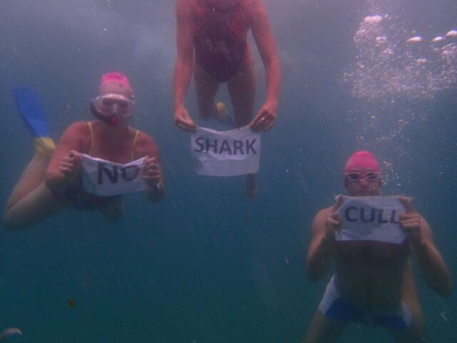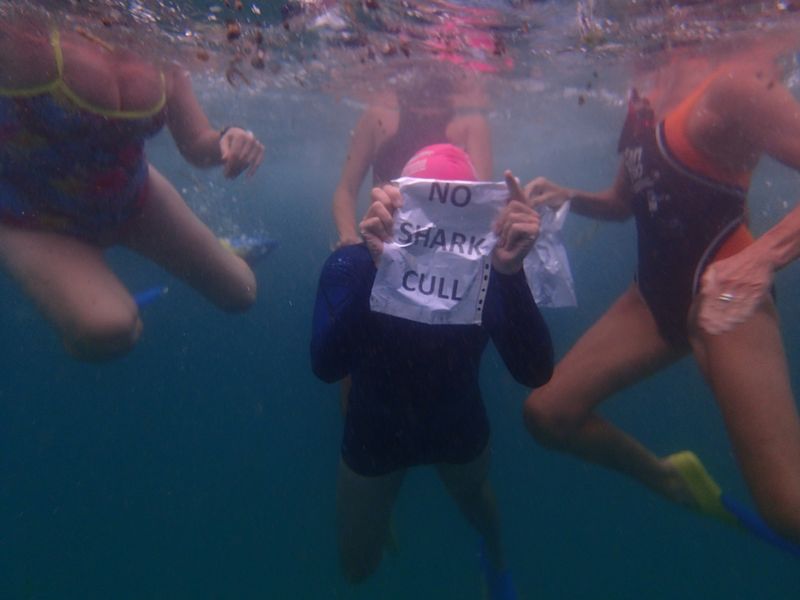Sharnie from Healthy Oceans Need Sharks was holding and underwater protest this morning against the culling of Sharks and asked for our help. We filled our swimmers full of our signs and off we went to point. Here are some of the shots from this morning. Thanks everyone for helping out.