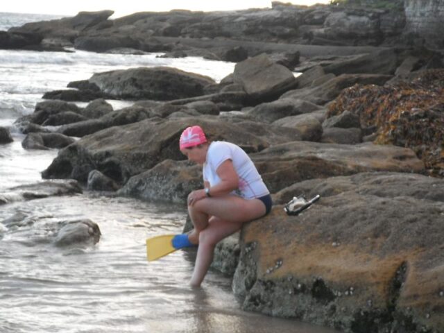 We look forward to when you ‘reveal’ yourself with the usual swim gear and pink hat for a 7.00 Shelly swim:)