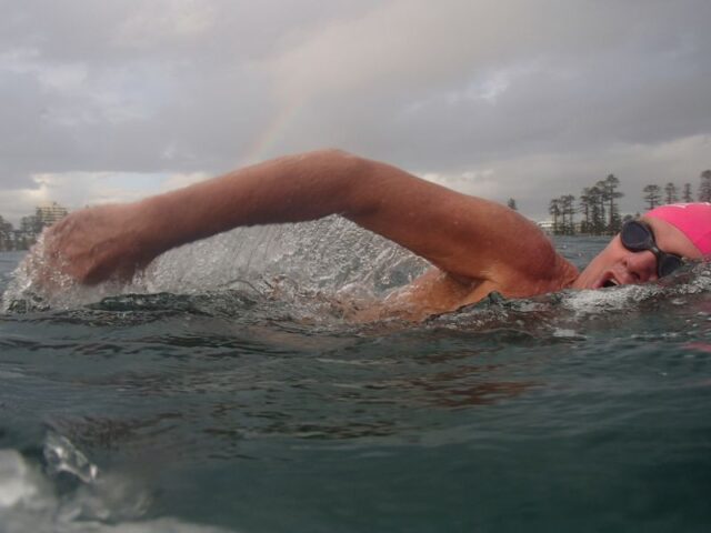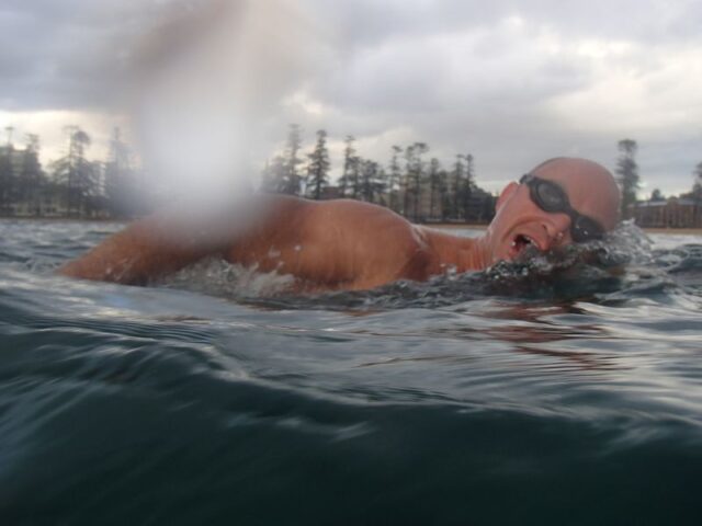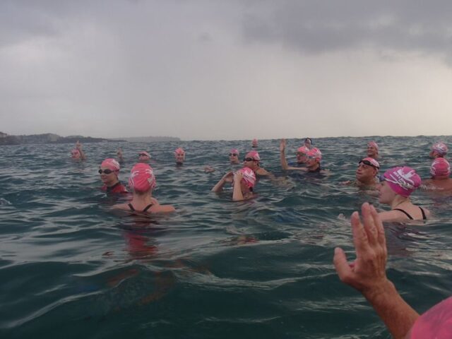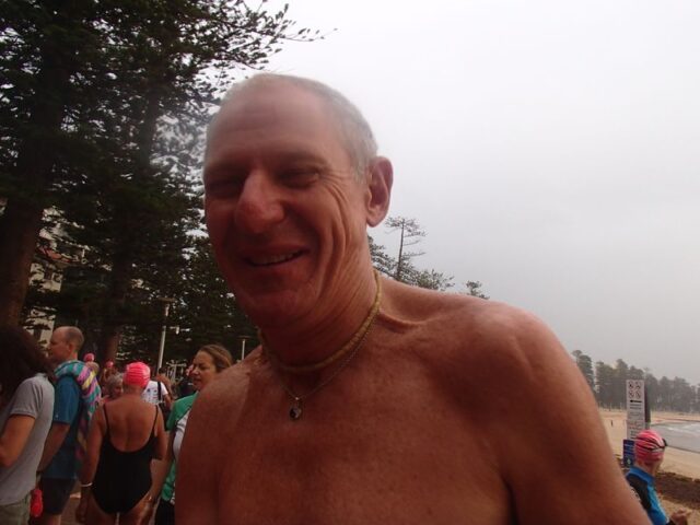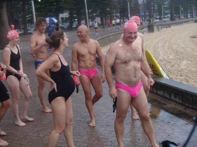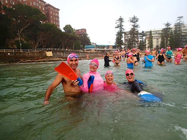 Russel only managed to reach turn-around point at Freshwater pool because he was surrounded by gorgeous women who kept him well motivated.