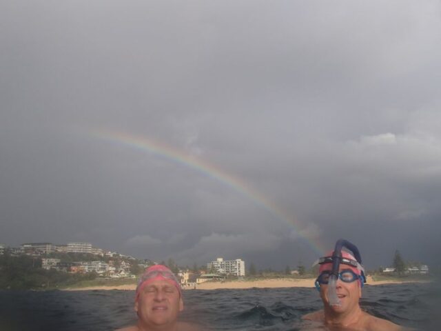 Thanks for the blog pics: gorgeous. How wonderful was this morning? I arrived at Shelly in the rain, and returned to Manly under a rainbow. Paradise!