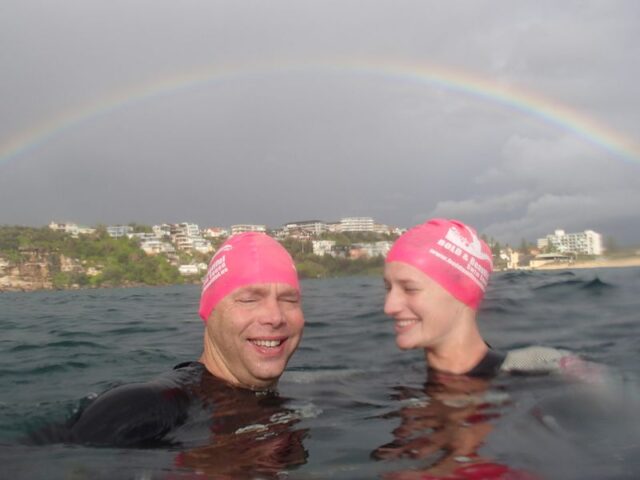 Thanks guys for a beautiful 6km swim – great company, rain, sun, rainbows and lots of fish (and no big ones with teeth!!) What a great morning. Lori – give those shoulders a rest and yourself too!