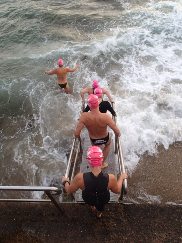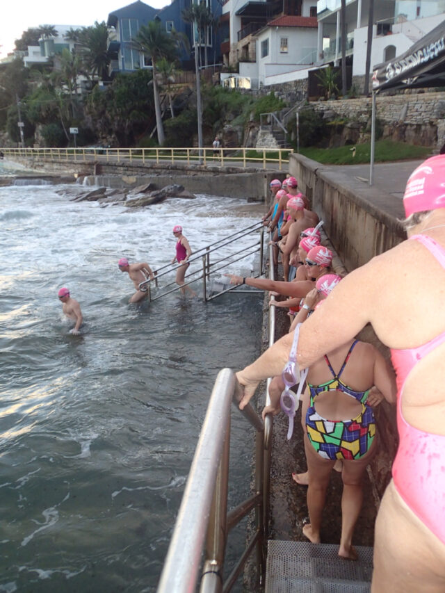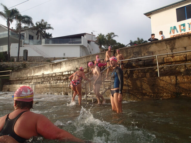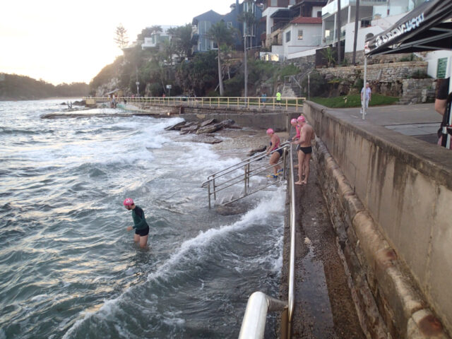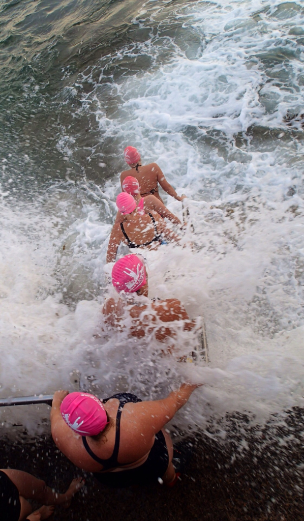 Bit of a bumpy swim today. I was joined by my partner today(he doesn’t swim as I often as I do) and was a little hesitant about the messy swell but gave it a shot (figuring we would stay together). We got separated amongst the waves and I ended up in a big set, drifting towards the surfers and a little scared.
