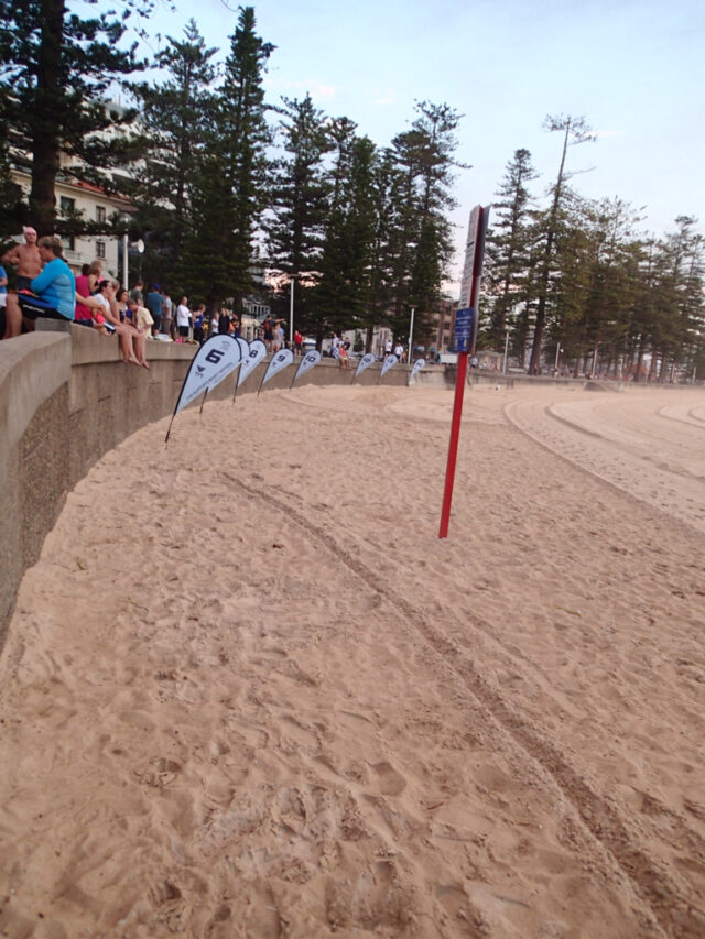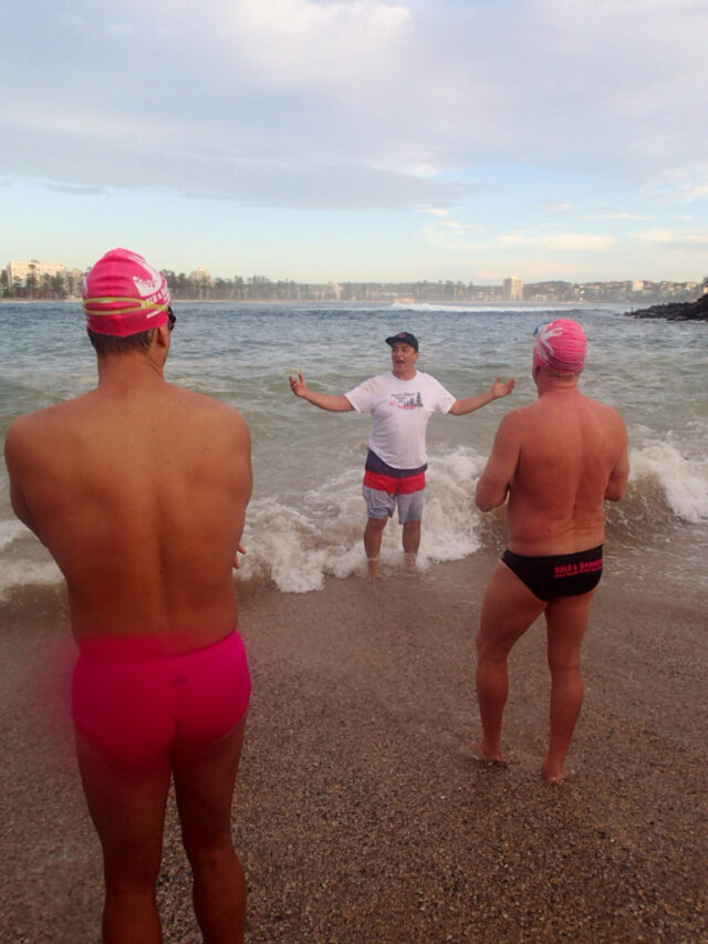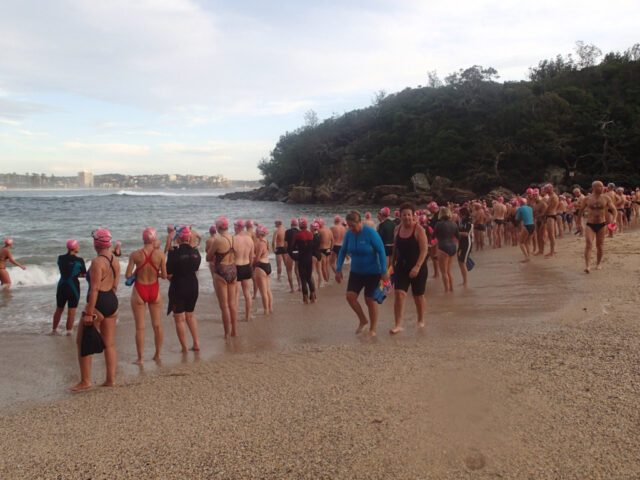 Into the waves we go, sharp right and head for Shelly beach.