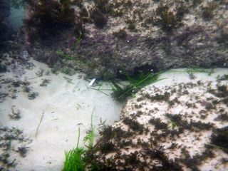 The highlight of the morning was a large school of tiny baby squid just off the point. You can see them… click on the photo to enlarge it and look for their beautiful fluoro eyes… in the second photo there is a single one having just changed to a brown colour 🙂