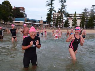 26 swimmers set off early; 6 headed north and 20 ventured into Shelly to be accompanied by a dusky doing beach patrol. 8 swimmers also continued on for an extra lap after the regular swim 🙂