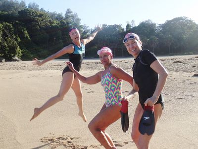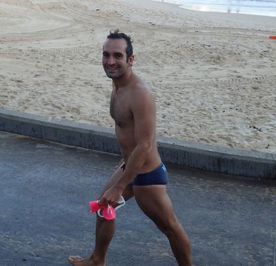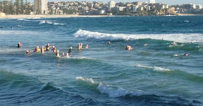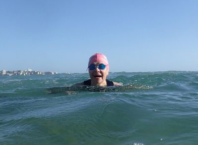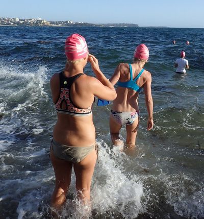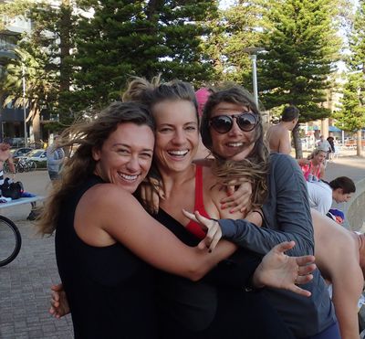 After the ‘washing machine’ like swim, Jenny enjoys a frollic when she returns to Manly.