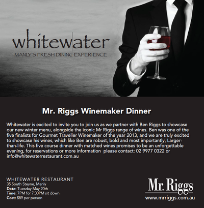 Whitewater is having a wine dinner and Ben Riggs is an industry legend.