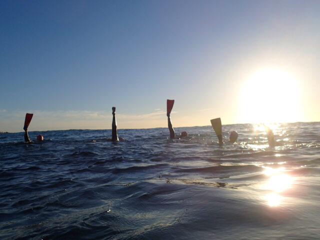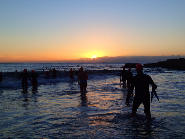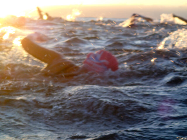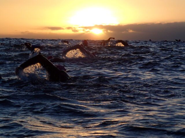 Off we go swimming into the sunrise having a ball.