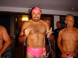 David Adams’ swam in the bare pink today, leaving his trademark ‘under the pink shorts’ at home for his last swim with us as he head’s back to Atlanta with his family tomorrow morning 🙁