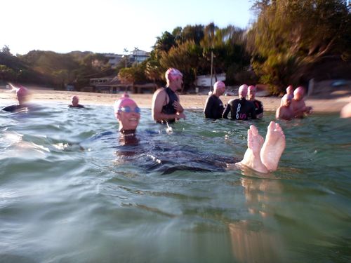 Anyone else interested in “going flipperless”? I want to but need other ‘slowies’ without flippers to join me – in fact no flippers – NO wetsuit! Anyone up for it? We will all swim together and tell Jules not to wait for us at Shelly! It will take the pressure off and we can just enjoy our snail like pace! Discuss with me 🙂