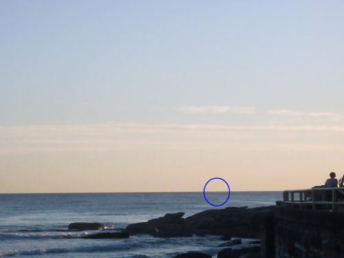 There were a couple of whales way past the point this morning – We saw them ‘spouting off’ – You can barely see it in the photo so I put a blue ring around it!! 😀