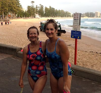 Midge and Nanette come in from their 6am swim, all smiles as usual…