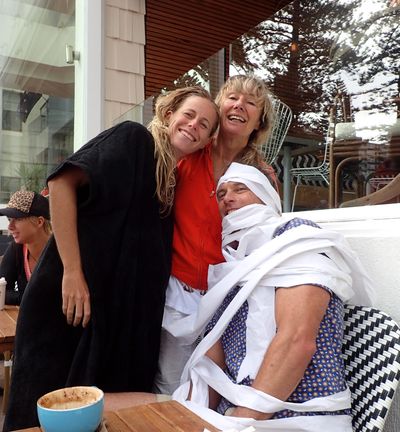 Back at the Surf Club Dave is getting a few birthday hugs. Here he is with Megan and Eva. Eva will now become known as the most amazing chocolate cheesecake maker of all time!