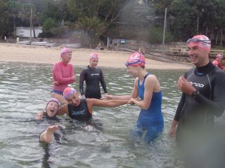 How fantastic to be mentioned on the blog today – one year afer my last swim with B&B (although not my last swim in a pink cap!). Last year was a birthday to remember for the rest of my life; first having Happy Birthday sung to me by B&B and then going on a 3k swim to Little Manly beach and back, before leaving Manly in the afternoon……