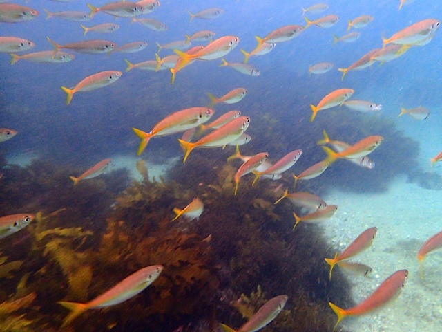 Still multitudes of fish on the way back! Some great pics from Stephen, and some more yellowtail with a pinkish sun tinge.. (natural!)