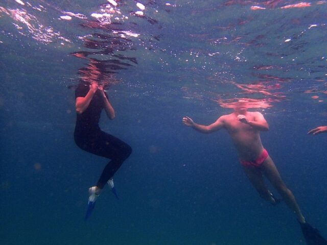“oooh quick girls dive under, there is a [massive] sea slug here hehehehehe”