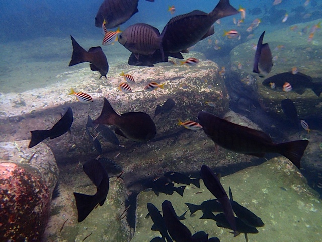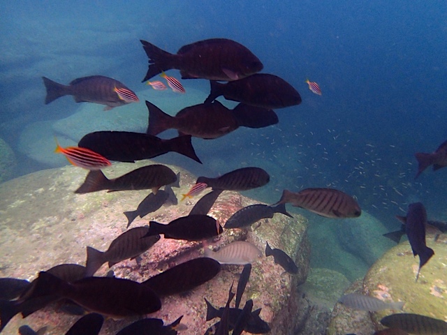 Here’s a pic of Steve Coutler with his gear on for a change…. thankfully because it was very clear again…. We saw a large pod of dolphins flirting with the southern end of Manly ths morning but not quite coming in to the cove, and not quite close enough for a photo opportunity…