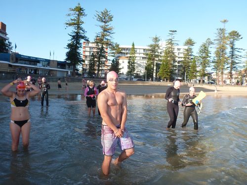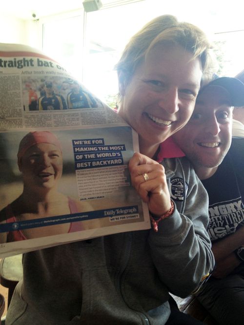 Grant Denyer was at Manly Point for Sunrise’s weather this morning, so guess who got to feature on channel 7… Oh… that would be us !! He even mentioned us by name 🙂 Of course we invited him to swim with us too.