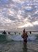 A short wait at the point before swimming back into the beach – A massive rogue wave got us just after this photo! Izzy arriving safely – about 1 minute later we both fell into a hole and the rip! You just never know what will show up in the ocean!