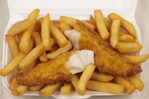 (beer batter with a nest of french fried potatoes)