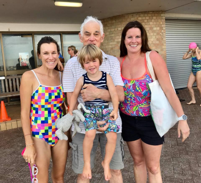 Special moments when family join you for a swim, like Sophie’s Dad Mike over from England, with niece Louise and Elliot