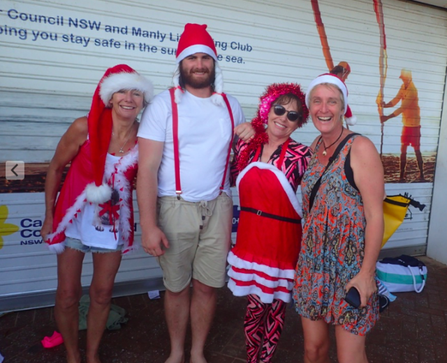Amanda and sister Debbie spread some Christmas cheer. Thanks for the pre-swim rum balls Amanda.