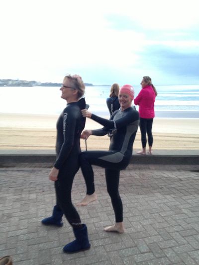 Getting a wetsuit on and off are truly the most unglamorous activities and ideally shouldn’t be done in public. None of us care. Here are some wetty wrangling shots and a few posing shots too…!
