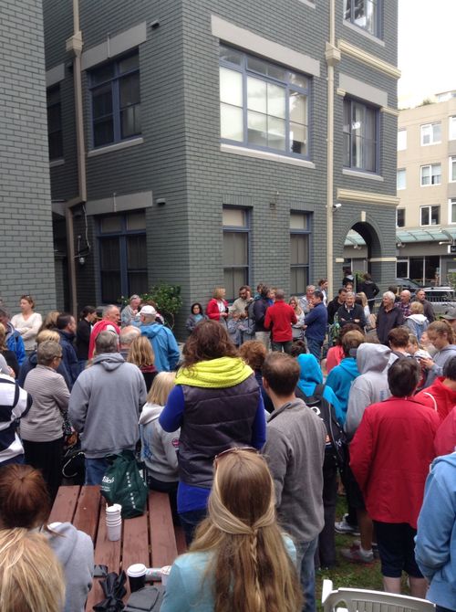 Despite the grey sky, the crowd waited patiently.