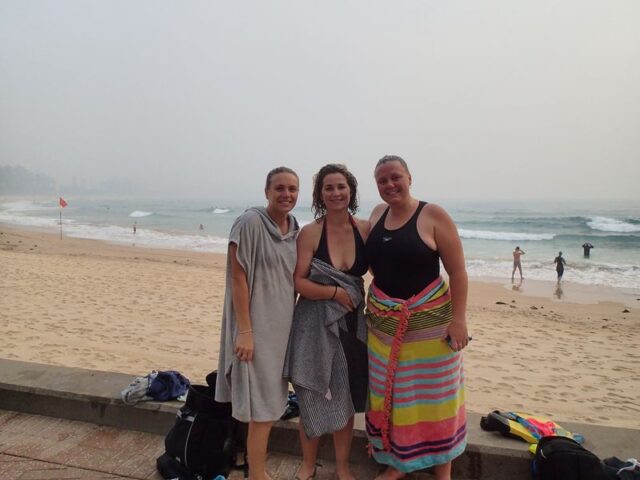 Me with my sister-inlaw Felicity and sister Lara after the swim today.
