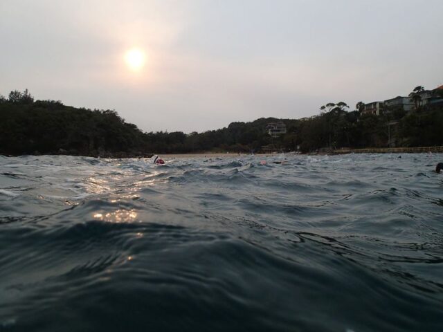 This is how the others swim.  Lay back and take it all in.  The smoke now appears to be taking over.  There were no fresh breaths to be had in between strokes today.