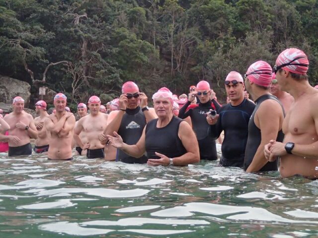 Ian introducing the new way we do “Lets go”.  We have two starts.  One for the racing swimmers and one for the ones who love to take in all of the scenery.