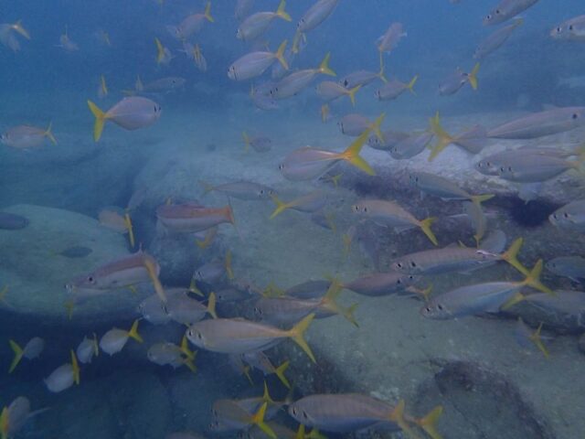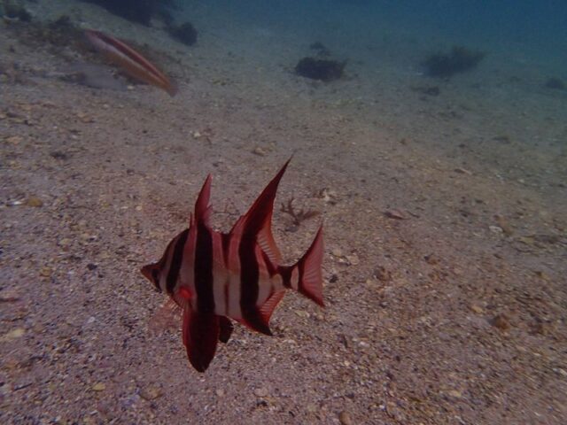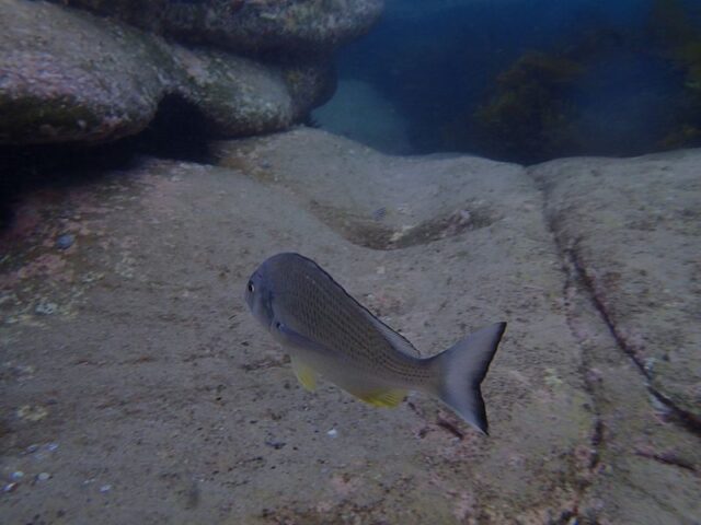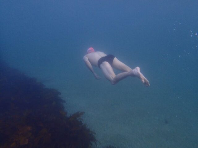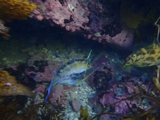 There wasn’t alot in the water today due to low visability. Well if there was alot I couldn’t see it. Quick question though, does anyone know what the snap crackle pop sound is in the water near Fairy Bower? I hear it all the time and I have no idea what it is. It almost sounds like the ocean has a water filter on it.
