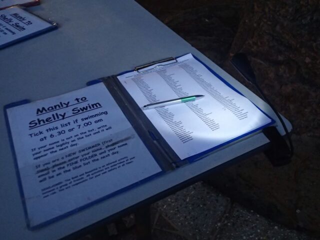 Think i might need glasses. This looked clear to me at the time. Maybe just a little extra sleep was needed. This pic was to show the dedication of our swimmers. Swimming with a broken foot and even bringing along his own support crew to help him at each end of his swim. Nothing can keep us out of the water. Good on you.