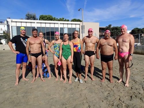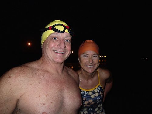 Yesterday he had a lovely 3.2km swim with the Seal Beach Sea Monkeys. Pre-dawn for the first half of the swim, starting at 6am and swimming quite a way off shore past an oil rig !
