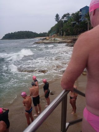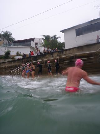 Some personal bests were no doubt swum today due to the fact that there was an early spotting off the Point of a shark! Various reports were circulating..(great whites, tigers etc), but it appears to be confirmed by some our own swimmers (one of them Derek) who went in for an early swim and some of the Old and Bold!