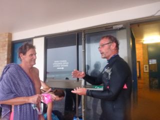 Another great blog Lesley! I have got a photo of Mr Football, I mean Mr Kelly, fully dressed after the swim too! (How does he manage not to get wet patches on his clothes?)