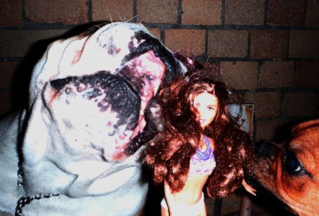Barb-Bee didn’t end up swimming – the dogs licked her to death then bit off her arm!! 😀