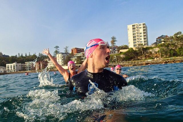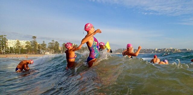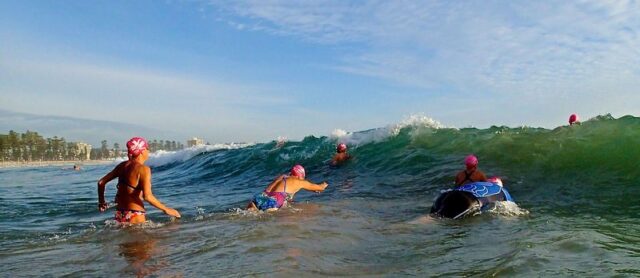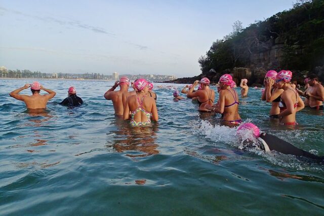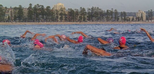 Today, as a special treat, we have the legend of the Pink Brigade, the story of 177 brave swimmers who, against the odds, swam into a rumoured tide of a thousand (or maybe less) bluebottles brought in on the NE swell…