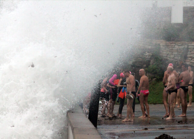 Not the best day to swim really. Main beach was a NO GO zone, water right up to the sea wall and debris all over the place. Only the foolish would have gone out in that.
