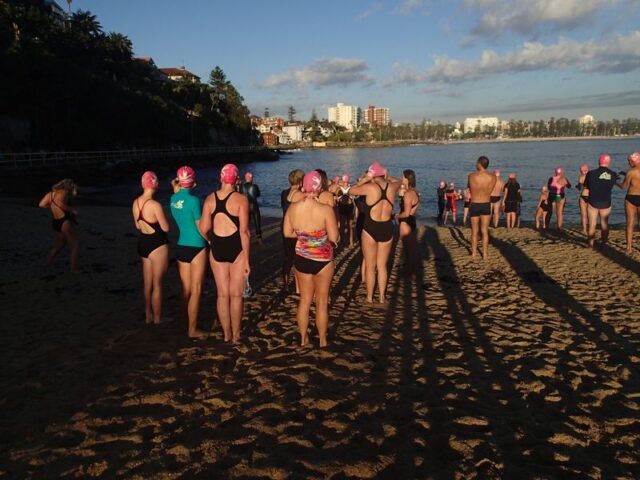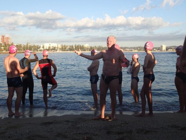 To Queenscliff and back. Every morning during summer, LEAVING the surf club at 5.50am. Wait for everyone in the water before the swim starts. Buddy up with someone, usually the same ‘speed’, that way everyone is ‘accounted for’ at Queenscliff.