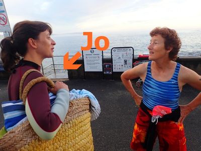 My lovely wife asking for directions to Shelly Beach: