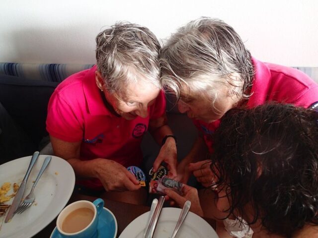 Meeting up with the early lappers provides a more detailed ‘condition’ report! General relief as it is pronounced all clear!