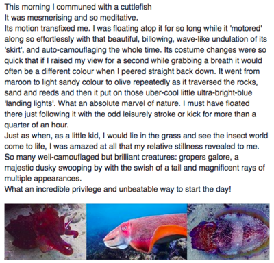 And Zab had an amazing encounter with a cuttlefish, so eloquently described above! (her beautiful words not mine)