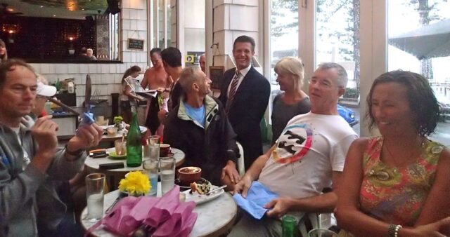 Oh I’ve remembered what Sterling came in to say…something about Tim just pipped him at the post and beat him back to Manly! Btw it is only a race for 6 or 7 swimmers!