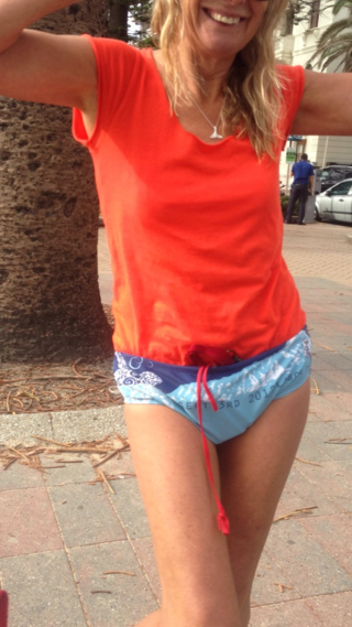 John Kelly definitely does have something in his budgies Lesbubbles…something large and plastic! Newbie John was rescued by me and then deserted when in the hands of Jenny and Attracta I’m afraid as I was worried I wouldn’t get to Shelly for blog photos. John runs with Manly Running Club. He might need a bit more practise when it’s calmer.